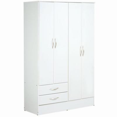 Placard 4 puertas, 2 cajones, 2 barrales y 3 estantes móviles. Fabricado en melamina, color blanco.