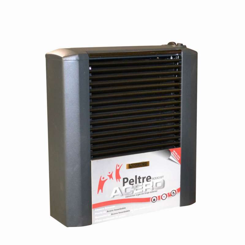 Calefactor convector, sistema Multigas, 5000 kcal/h. Sin tiraje. Control de oxigeno ambiente, encendido piezoel?ctrico y valvula de seguridad. Medidas Al457 x An.521 x Prof. 164mm .Peltre Acero.