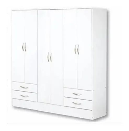 Placard 6 puertas, 4 cajones, 2 barrales y 4 estantes móviles. Fabricado en melamina, color cedro.